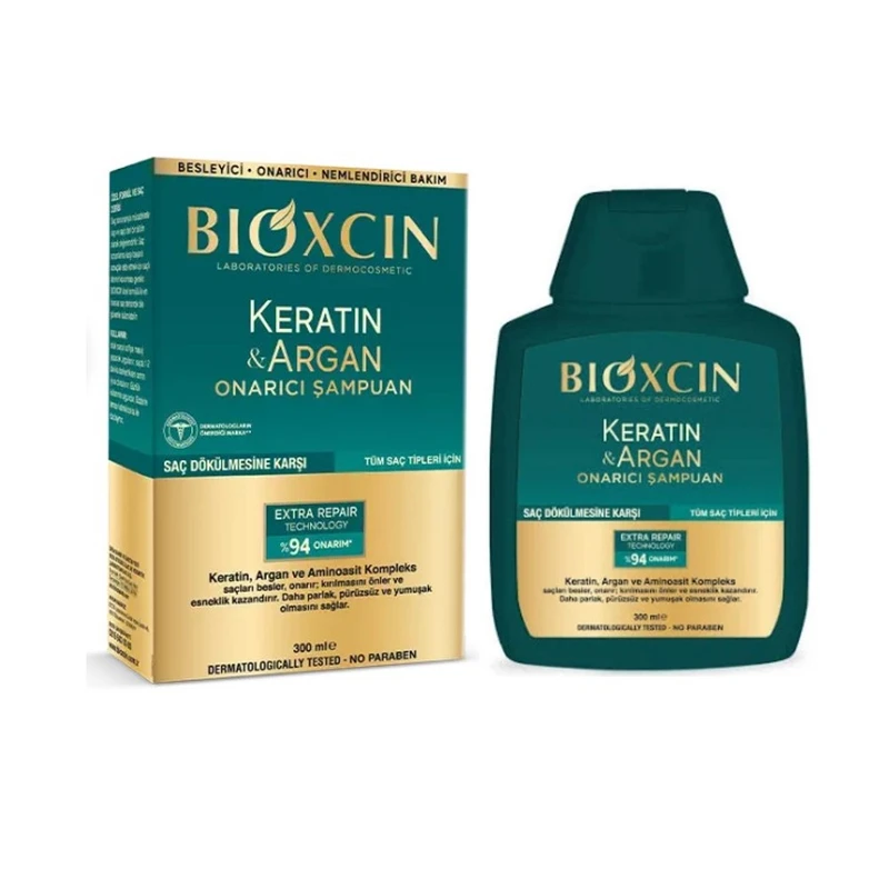 شامپو bioxcin گیاهی ضدریزش ترمیم کننده با فرمولاسیون قدرتمند و با بهره گیری از عصاره های کاملا طبیعی و انواع ویتامین ها و مواد معدنی برای کنترل ریزش مو طراحی شده است . شامپو ترمیم کننده ضد ریزش bioxcin حاوی آرگان کراتین، حاوی کراتین هیدرولیز شده و روغن ارگان اصل باعث ترمیم و مرطوب شدند . موهای آسیب دیده ای میشود که درخشش و رطوبت خود را از دست داده اند. وجود بیوکمپلکس B11 در شامپوی ترمیم کننده بیوکسین، باعث تقویت و جلوگیری از ریزش مو میشود . شامپو ترمیم کننده بیوکسین بدون پارابن، عطر و مواد حساسیت زا بوده و برای انواع مو و بخصوص پوست سر حساس بسیار سازگار می باشد.